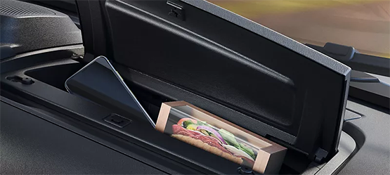 Het interieur zit vol slimme opbergruimte om het leven onderweg aangenamer te maken. Opbergvakken in de portieren bieden ruimte voor bijvoorbeeld je zonnebril, schrijfblok, snacks en zelfs 1,5 liter drinkflessen. Het veilige opbergvak bovenin het dashboard is ideaal om je smartphone in op te bergen.